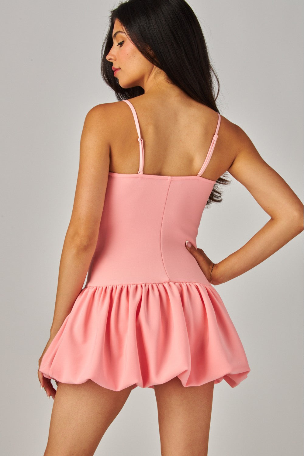 Sleeveless Balloon Skirt Mini Dress with Thin Straps